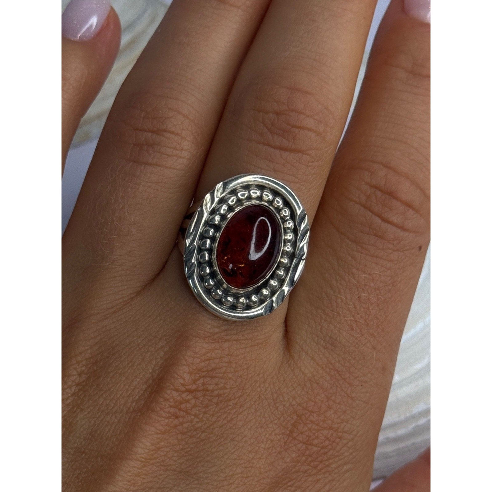 Vintage Design 925 Sterling Silver Amber Ring Size 9