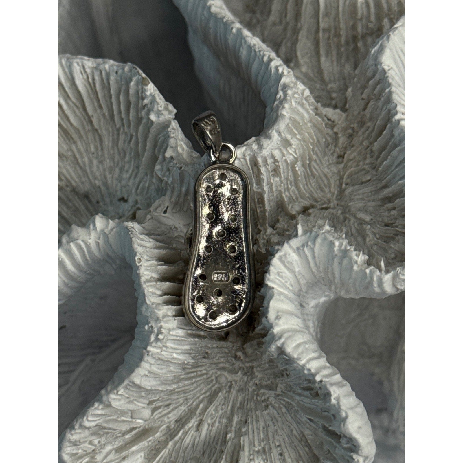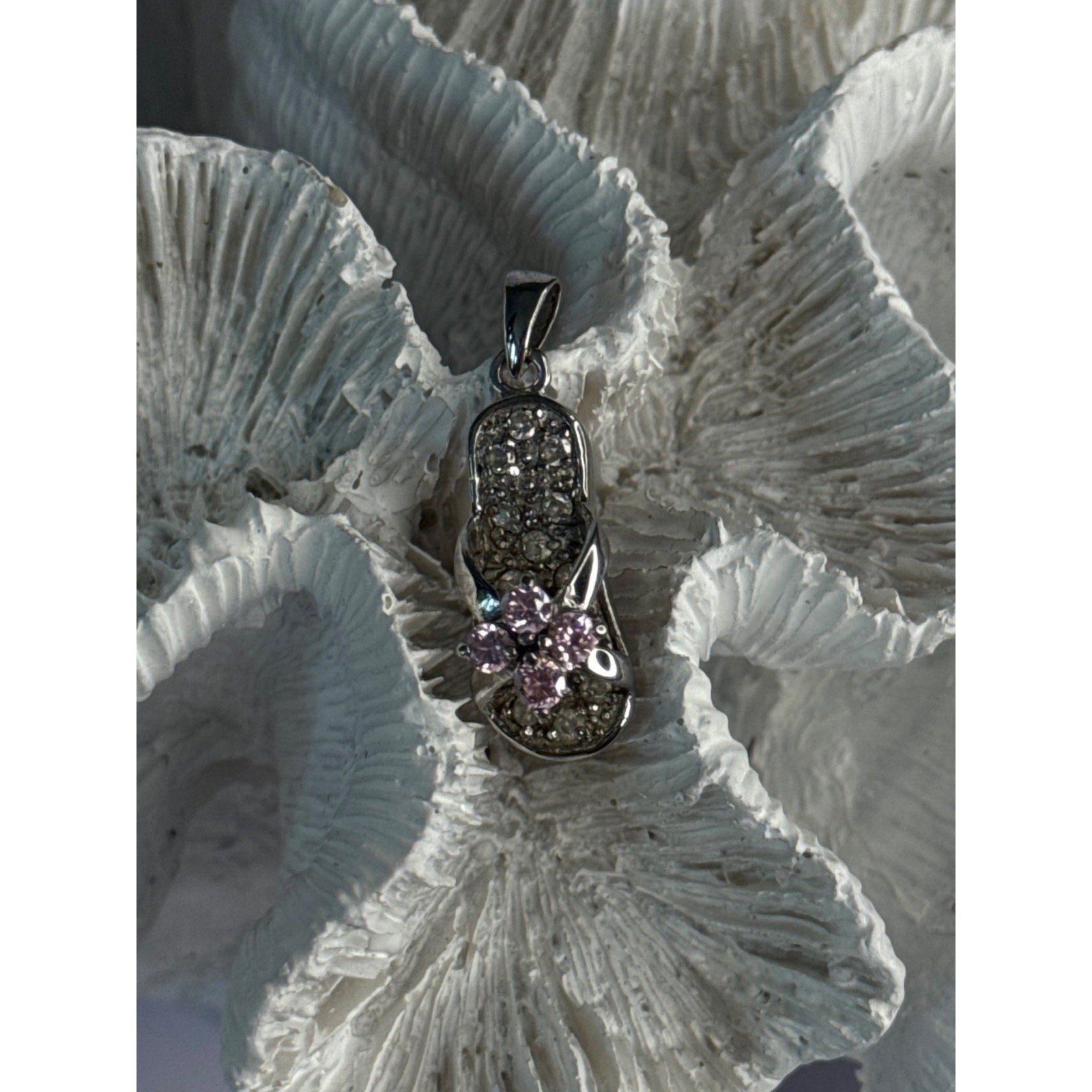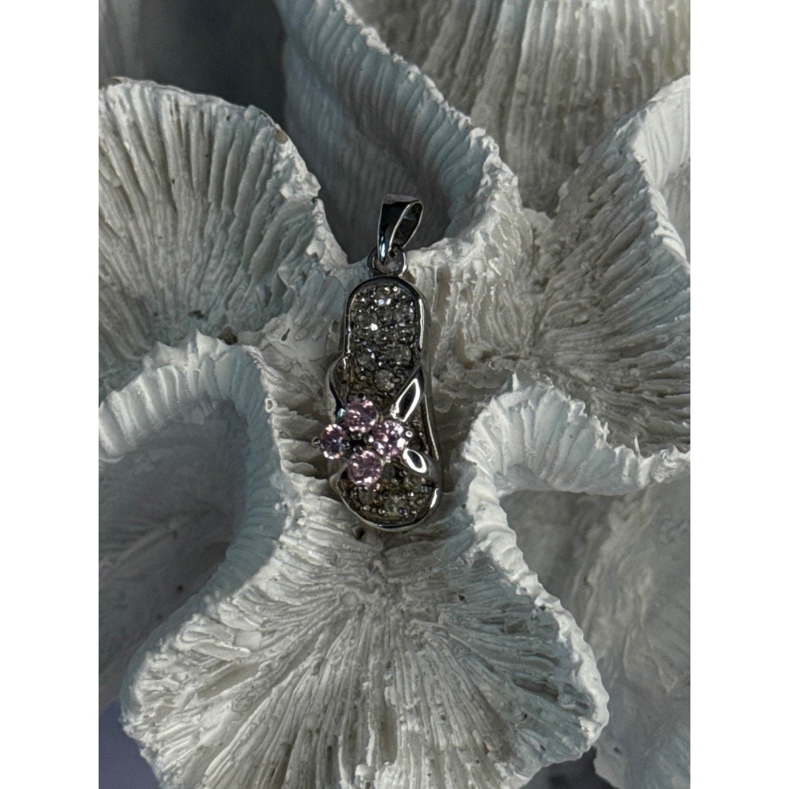 WS 925 STERLING SILVER FLIP FLOP SANDAL PINK & WHITE CZ PENDANT LENGTH 1.30 INCH